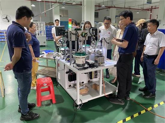 随后,校方团队走进非标自动化生产车间与机械加工车间,实地观摩产品生产全流程。机械部负责人结合设备操作演示,深入讲解加工原理、工艺难点及关键技术突破,展现了企业以创新驱动发展的核心竞争力。学院领导对林顺机电的智能化、自动化制造水平表示高度认可,并围绕技术细节与企业工程师展开热烈讨论。