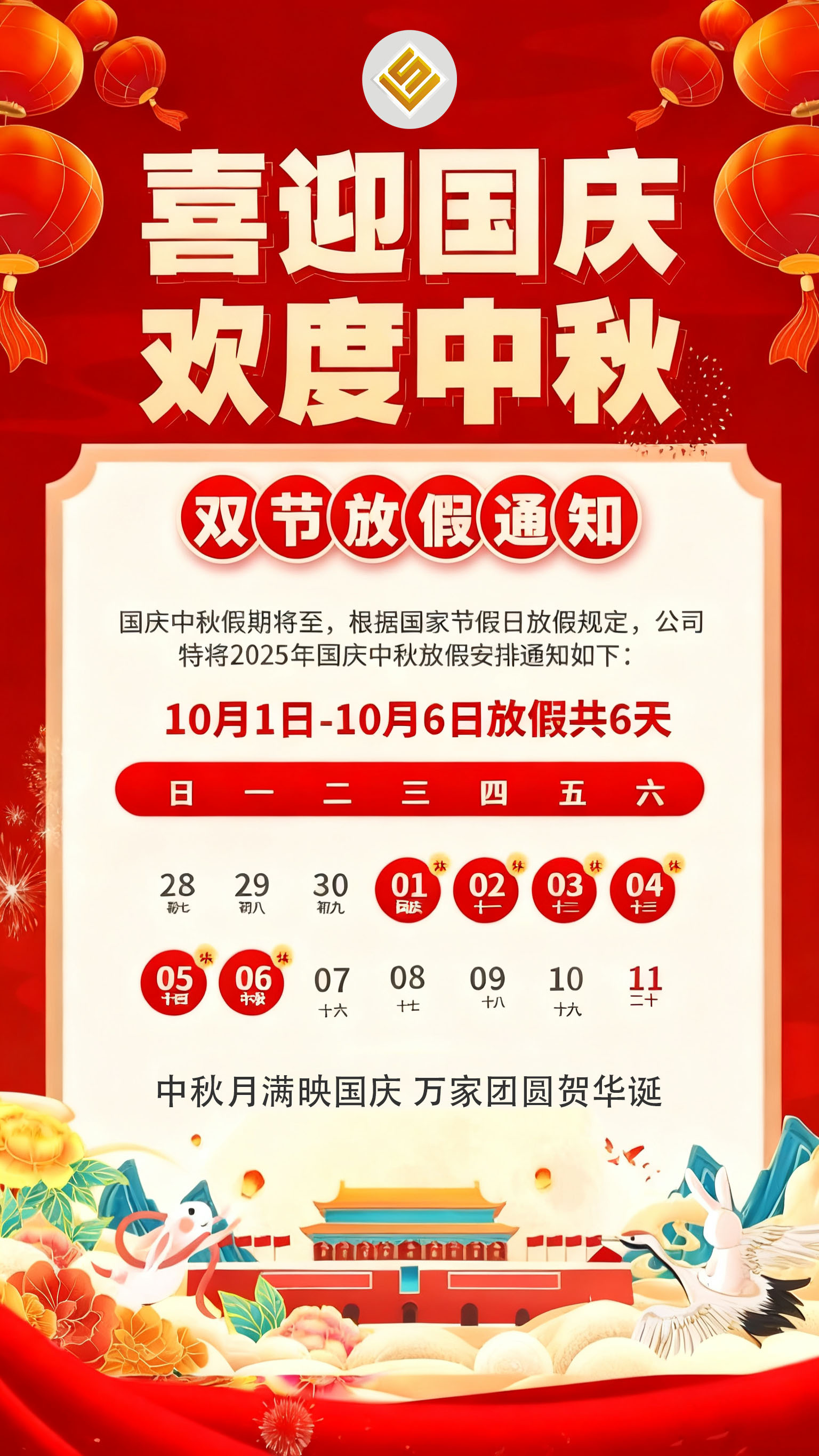 喜迎国庆·月满中秋|2025年国庆中秋双节放假通知